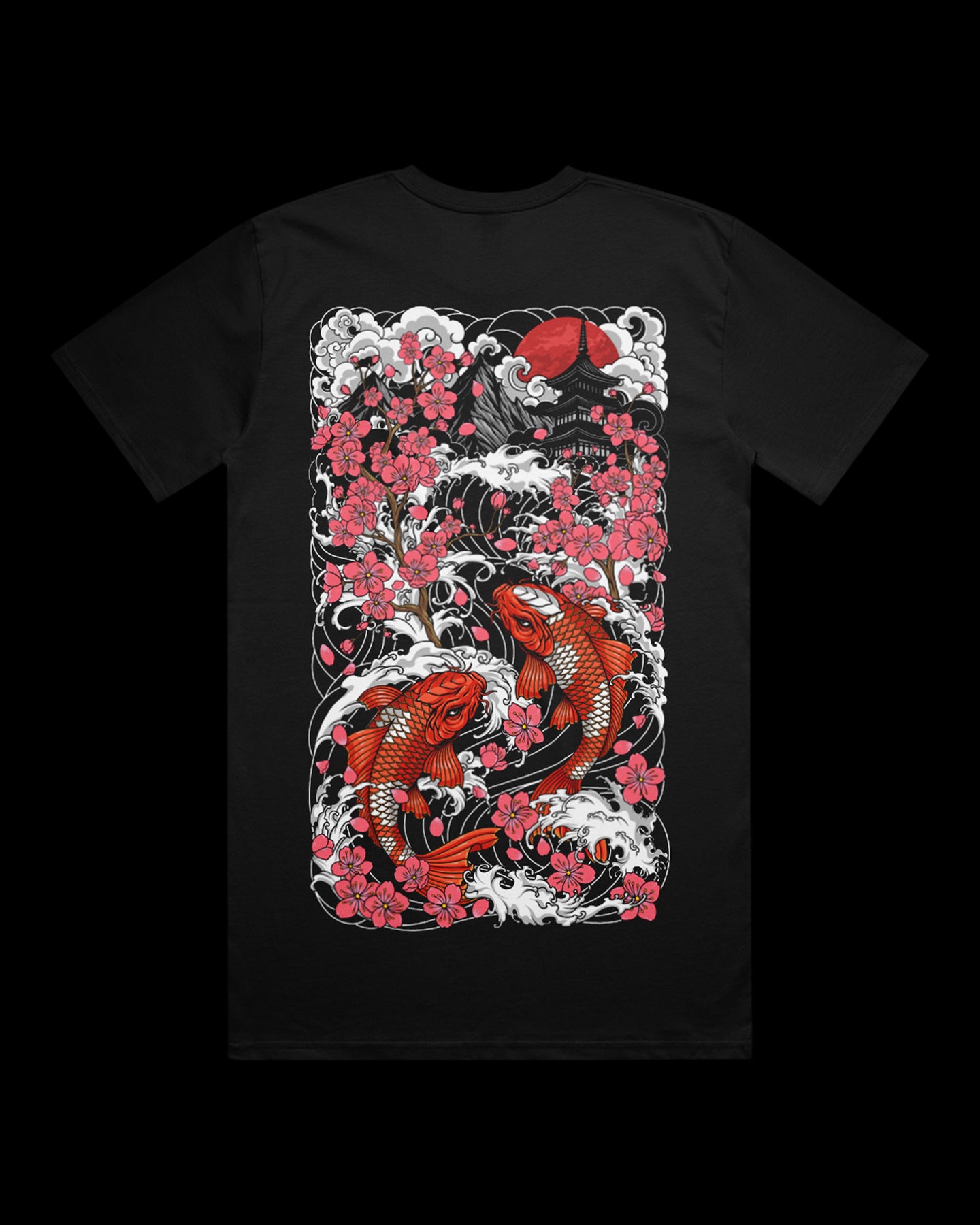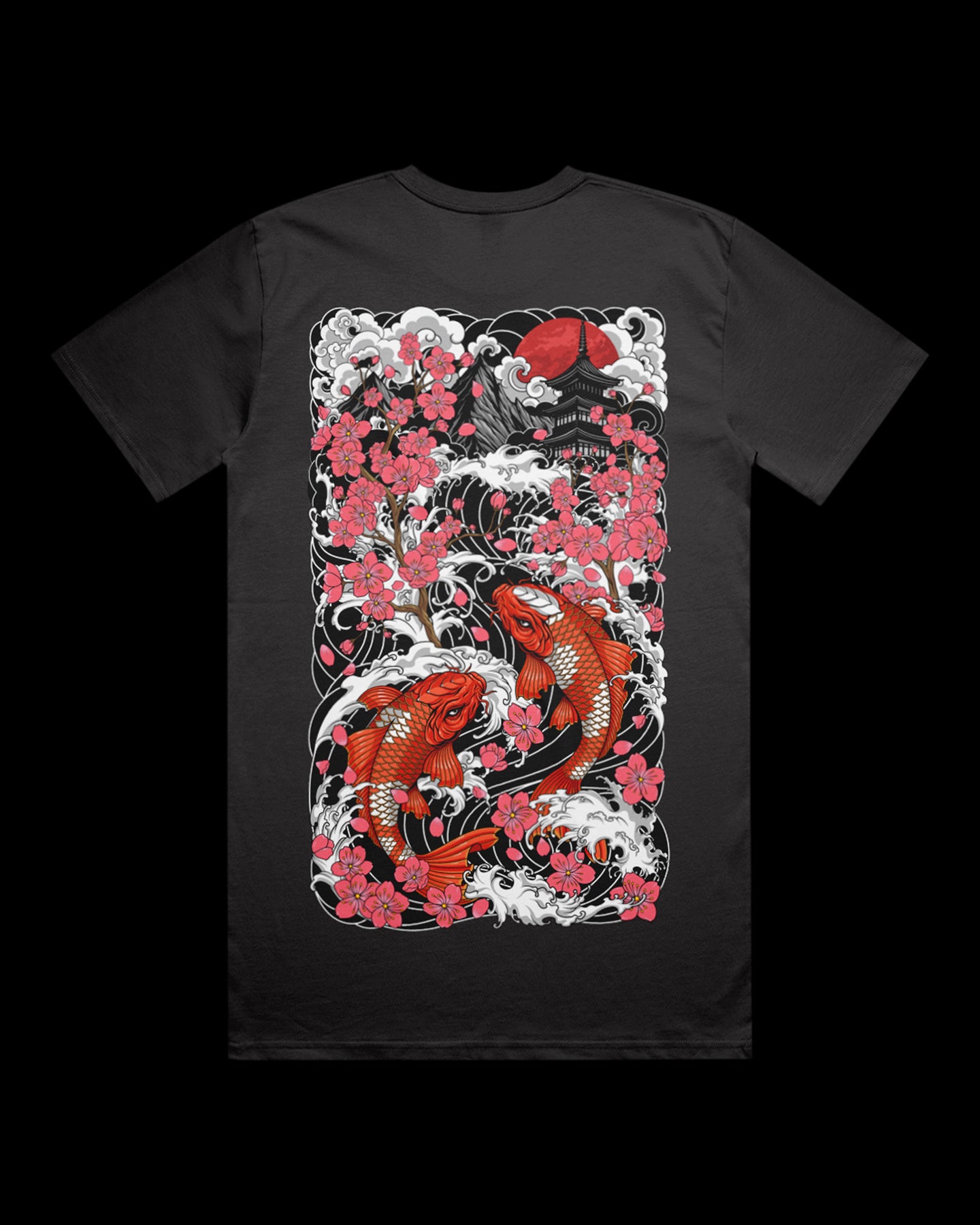 Sakura Surge blends koi, cherry blossoms, and crashing waves into a full Neo-Japanese tapestry. Inspired by traditional Wabori and Gakubori tattoo art, this piece captures movement, balance, and the spirit of renewal in a detailed large back print.