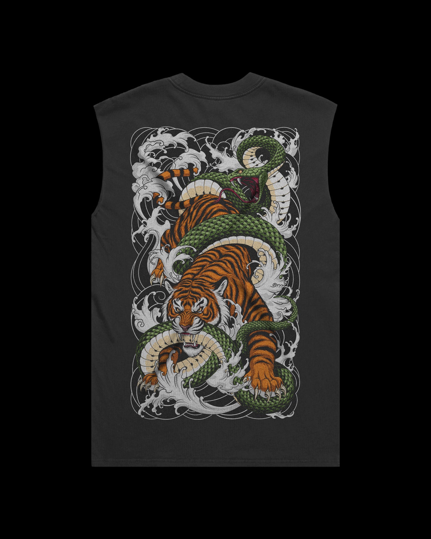 A Japanese Tattoo Graphic Tank Top crafted from heavyweight 240gsm carded cotton for a structured, premium feel. Designed with a boxy, oversized fit, it features raw-cut armholes, side-seamed construction, and double-needle hems for durability. Garment dyed and pre-shrunk to minimise shrinkage, it delivers a worn-in look with long-lasting comfort.